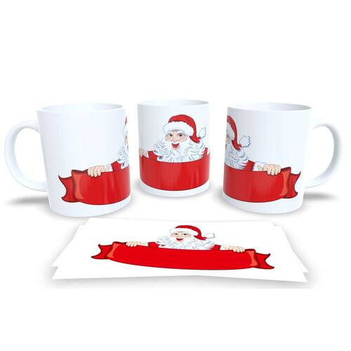 Caneca personalizada de porcelana de alto brilho, com alça e interior branca Coleção Natal Papai Noel.