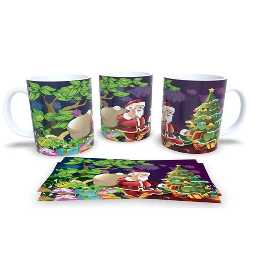 Caneca de Porcelana Branca Personalizada Natalina Papai Noel