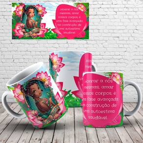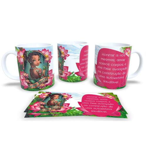 Caneca personalizada de porcelana de alto brilho, com alça e interior branca Coleção Princesas Empoderadas.
