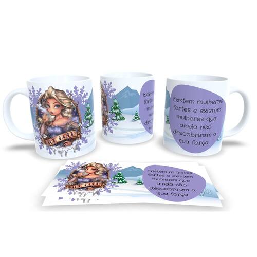 Caneca personalizada de porcelana de alto brilho, com alça e interior branca Coleção Princesas Empoderadas.