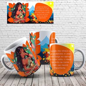 Caneca personalizada de porcelana de alto brilho, com alça e interior branca Coleção Princesas Empoderadas.