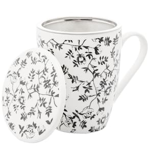 Caneca de Porcelana com Tampa e Filtro Lyor Xícara de Chá 310ml Super White Tiny Flowers.