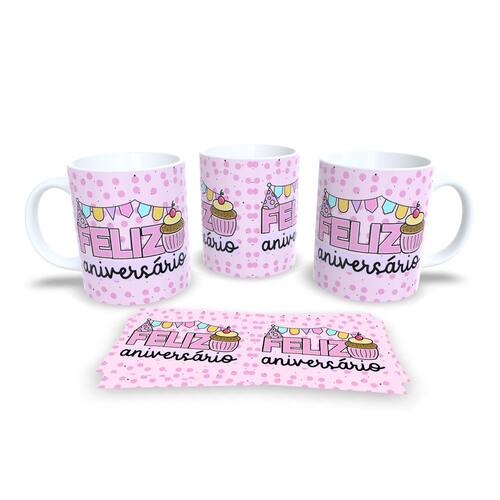 Caneca de porcelana de alto brilho, com alça e interior branca Coleção Anivesário.