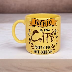 Caneca de Porcelana Já Tem Café Tpc para Bebidas Quentes com Acabamento Preto Ideal para Uso Diário Amarelo Simas
