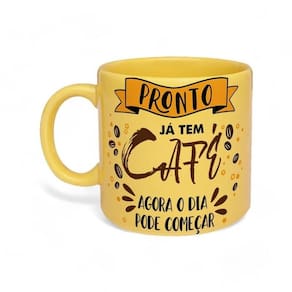 Caneca de Porcelana Já Tem Café Tpc para Bebidas Quentes com Inscrição Decorativa Ideal para Uso Diário Amarelo Simas