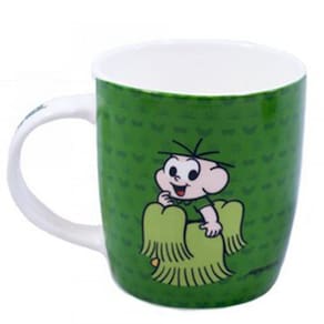 Caneca de porcelana do Cebolinha. Para quem gosta de um café da manhã reforçado, utilize essa caneca com a estampa do personagem, que é simplesmente linda e que conquistou milhares de pessoas pelo Brasil com suas aventuras. Aproveite e tome aquela bebida preferida. Além disso, vem dentro de uma lata super legal.