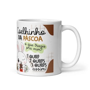 Celebre a Páscoa com estilo e bom gosto com as nossas canecas de porcelana personalizadas. São mais de 70 modelos diferentes para você escolher, com temas variados como coelhinhos de páscoa, temas católicos, memes e chocolates. As canecas são importadas, com qualidade premium, e podem ser usadas para tomar café, chá, chocolate quente ou o que você preferir. Além disso, elas são ótimas para presentear quem você ama ou decorar a sua casa. Aproveite e faça já o seu pedido, entregamos em todo o Brasil com rapidez e segurança. Garanta a sua caneca de páscoa 2024 e tenha uma Páscoa mais alegre e divertida.Capacidade: 325 mlMaterial: Porcelana ImportadaAltura da caneca 9,5 cmDiâmetro da caneca: 8 cmCor da Caneca: BrancaCuidado: Lavar com água, sabão e esponja macia. Não utilizar produtos químicos e abrasivos.Satisfação Garantida! Amamos canecas, e nosso catálogo está repleto de canecas que gostaríamos de ficar com ela pra gente, por isso curta bastante! Usando uma caneca você pode economizar até 300 copos descartáveis! Vamos ajudar o nosso planeta.Item incluso:Uma Caneca de Porcelana 325 MLQualidade Premium e estampa em alta definição