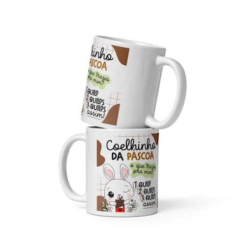 Celebre a Páscoa com estilo e bom gosto com as nossas canecas de porcelana personalizadas. São mais de 70 modelos diferentes para você escolher, com temas variados como coelhinhos de páscoa, temas católicos, memes e chocolates. As canecas são importadas, com qualidade premium, e podem ser usadas para tomar café, chá, chocolate quente ou o que você preferir. Além disso, elas são ótimas para presentear quem você ama ou decorar a sua casa. Aproveite e faça já o seu pedido, entregamos em todo o Brasil com rapidez e segurança. Garanta a sua caneca de páscoa 2024 e tenha uma Páscoa mais alegre e divertida.Capacidade: 325 mlMaterial: Porcelana ImportadaAltura da caneca 9,5 cmDiâmetro da caneca: 8 cmCor da Caneca: BrancaCuidado: Lavar com água, sabão e esponja macia. Não utilizar produtos químicos e abrasivos.Satisfação Garantida! Amamos canecas, e nosso catálogo está repleto de canecas que gostaríamos de ficar com ela pra gente, por isso curta bastante! Usando uma caneca você pode economizar até 300 copos descartáveis! Vamos ajudar o nosso planeta.Item incluso:Uma Caneca de Porcelana 325 MLQualidade Premium e estampa em alta definição