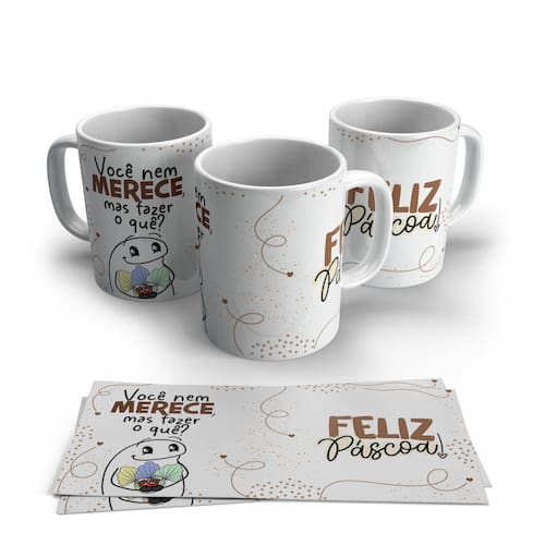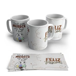 Celebre a Páscoa com estilo e bom gosto com as nossas canecas de porcelana personalizadas. São mais de 70 modelos diferentes para você escolher, com temas variados como coelhinhos de páscoa, temas católicos, memes e chocolates. As canecas são importadas, com qualidade premium, e podem ser usadas para tomar café, chá, chocolate quente ou o que você preferir. Além disso, elas são ótimas para presentear quem você ama ou decorar a sua casa. Aproveite e faça já o seu pedido, entregamos em todo o Brasil com rapidez e segurança. Garanta a sua caneca de páscoa 2024 e tenha uma Páscoa mais alegre e divertida.Capacidade: 325 mlMaterial: Porcelana ImportadaAltura da caneca 9,5 cmDiâmetro da caneca: 8 cmCor da Caneca: BrancaCuidado: Lavar com água, sabão e esponja macia. Não utilizar produtos químicos e abrasivos.Satisfação Garantida! Amamos canecas, e nosso catálogo está repleto de canecas que gostaríamos de ficar com ela pra gente, por isso curta bastante! Usando uma caneca você pode economizar até 300 copos descartáveis! Vamos ajudar o nosso planeta.Item incluso:Uma Caneca de Porcelana 325 MLQualidade Premium e estampa em alta definição
