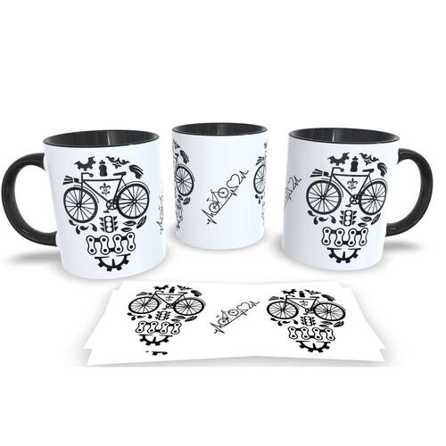 Caneca personalizada de porcelana de alto brilho, com interior e Alça PretaColeção Ciclismo.