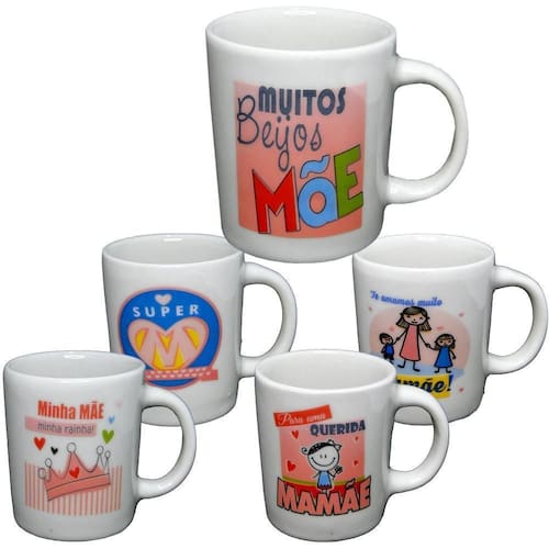Informações adicionais: Ean: 7891119002640 Validade: indeterminada Capacidade: 120ml Tamanho aproximado: a:7,5xl:6cm de Peso aproximado: 205g Tipo de produto: caneca tematica dia das maes Cor: branca com estampas mais de 30 modelos Composição: porcelana Marca: Porcelanas Sao Francisco