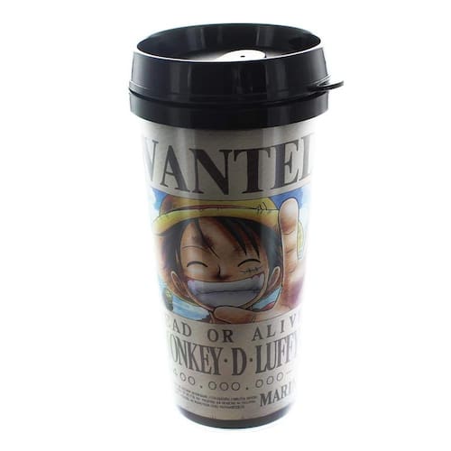 - Você vai "valorizar" esta caneca de viagem estilosa de uma peça com o líder dos Piratas de Chapéu de Palha!