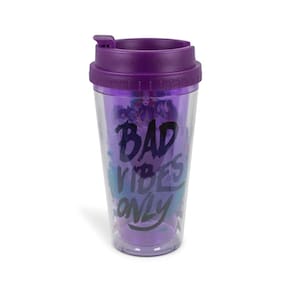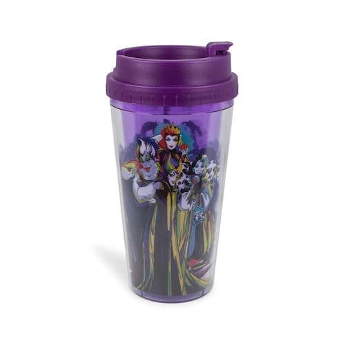 Caneca de viagem de plástico de parede dupla Silver Buffalo Disney Villains “Bad Vibes Only” com Ursula, Malévola, Rainha Má e Cruella de Vil, 16 onças