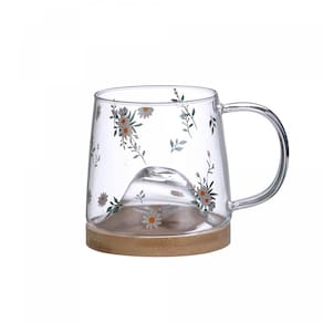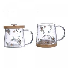 Caneca de Vidro Borossilicato Resistente ao Calor com Pires de Bambu Daisy 330ml - Lyor