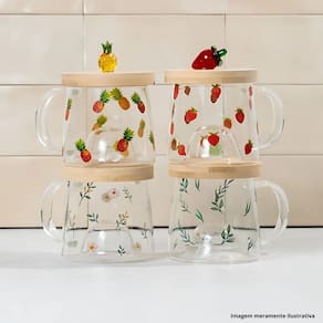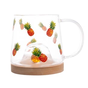 1 Caneca de Vidro Borossilicato Resistente ao Calor com Pires de Bambu Abacaxi 330ml 5706 - Lyor