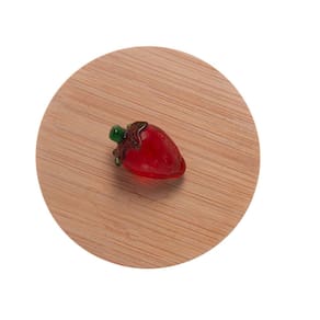 Caneca de Vidro Borossilicato Resistente ao Calor com Pires de Bambu Morango 330ml 5707 - Lyor - Dorémi Casa e Decor