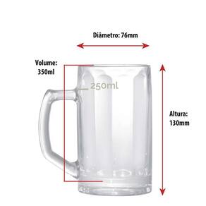 Indicado para: Cerveja e Chopp Material: Vidro Capacidade: 330ml. Medidas: Diâmetro 76mm x Altura 130mm.