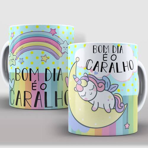 Caneca de porcelana de alto brilho, com alça e interior branca Coleção Unicornio Indelicado.