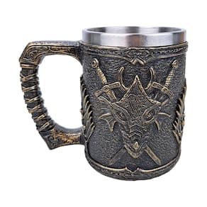 Caneca Dragão Espada Escudo de Resina Ideal para os amantes de dragões e da época medieval, esta caneca de resina é uma verdadeira obra de arte. Com um design em 3D que destaca um dragão imponente, é perfeita para apreciar sua bebida favorita com muito estilo. A cor preta com detalhes dourados dá um toque de elegância à peça. Garanta já a sua caneca do Dragão para dar um toque mágico ao seu dia a dia
