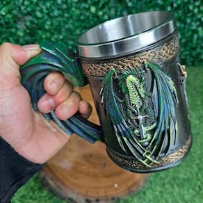 Caneca feita de resina com Capacidade de 400ml Copo de inox, ela e detalhada em relevo trazendo um lindo acabamento artesanal.