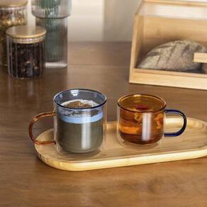 Caneca Dueto Dupla Vidro 350Ml Âmbar