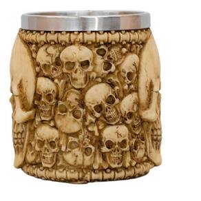Obs: dado às características do processo de produção, a caneca pode sofrer variações nas tonalidades de cores da resina. Conteúdo da embalagem: 1 caneca de resina com alça caveira.
