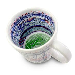 Esta caneca estádio simula o estádio em dia de jogo Na parte externa, a fachada, e na parte interna, a torcida. No campo de futebol, o momento exato em que o bahia marca um golaço do adversário.