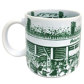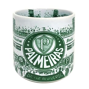 Caneca estádio - palestra italia produto exclusivo canecaria - oficial e licenciado pelo clube. Esta caneca estádio simula o estádio palestra italia em dia de jogo na parte externa a fachada, e na parte interna a torcida. No campo de futebol, o momento exato em que o marca um golaço do adversário. Na ilustração são retratadas cenas de um clássico dia de jogo em que a torcida faz a diferença, com trechos do hino, gritos da torcida, bandeiras e faixas. Produto oficial licenciado pelo. Caneca estádio tem patente requerida. Produzida em cerâmica com decoração de alta temperatura, é resistente ao uso em forno micro-ondas e máquina de lavar louças. Embalada para presente. Design exclusivo: eduardo santos para canecaria. 360ml, em cerâmica, 9,5 cm de altura x 8,5 cm de diâmetro.