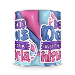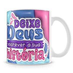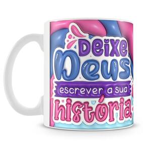 Embrace a sabedoria da fé e da entrega com a Caneca Estampada que traz a inspiradora mensagem: "Deixe DEUS Escrever a Sua História".