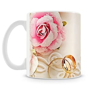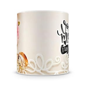 A caneca estampada para casamento é confeccionada em cerâmica de alta qualidade, proporcionando durabilidade e um toque de elegância.