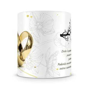 A caneca estampada para casamento é confeccionada em cerâmica de alta qualidade, proporcionando durabilidade e um toque de elegância.