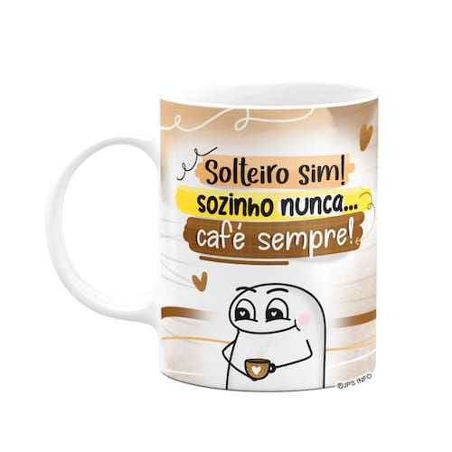 Caneca Flork Divertida - Solteiro sim, sozinho nunca!