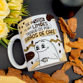 Caneca Flork Divertida - Troque os limões por grãos de café!