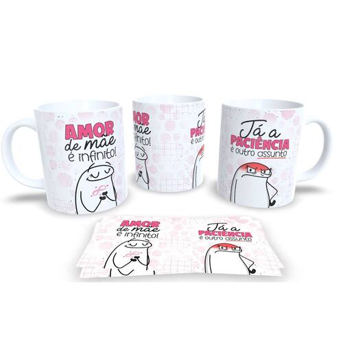 Caneca de porcelana de alto brilho, com alça e interior branca Coleção Flork dia das Mães.