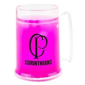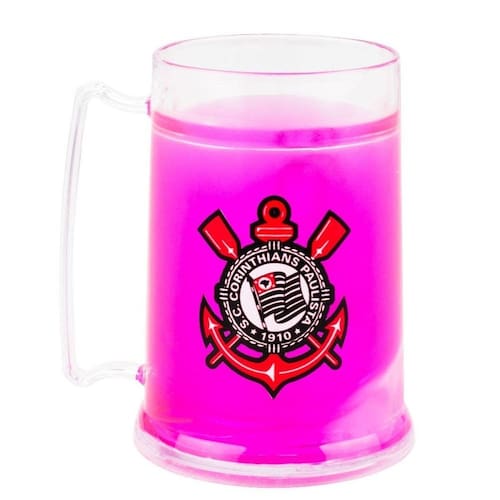 Caneca com gel isolante térmico na cor rosa com capacidade para 300 ml. Vem gravado com escudo do Corinthians. Gel não tóxico. Congele no freezer por até 2 horas com a boca para baixo para tomar bebida gelada. Material: plástico
