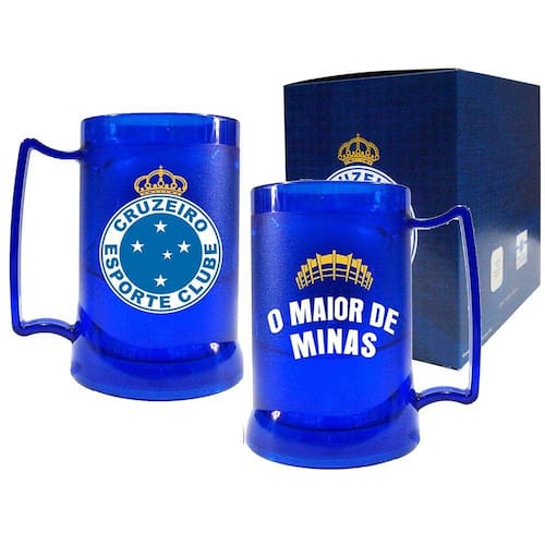 O sabor das conquistas cruzeirenses serão muito melhores com a Caneca Gel Cruzeiro. Essa linda caneca feita em acrílico tem capacidade para 400 ml e conta com Gel congelante interno, que irá auxiliar a manter a temperatura gelada de sua bebida. Apresenta o gel na cor azul, com o escudo do clube destacado. Uma peça imprescindível para todo torcedor do Celeste!