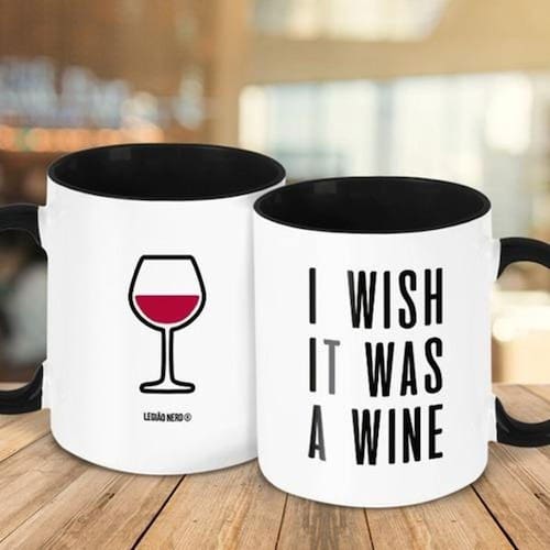 Caneca - I Wish It Was A Wine - Queria Que Fosse Vinho Produto exclusivo Legião Nerd - Informações técnicas: - Conteúdo da embalagem: 1 caneca - Capacidade: 325 ml - Material: cerâmica/porcelana - Pode ser usada no forno microondas - Dimensão aproximada da embalagem: 11 x 10 x 9 cm - Diâmetro da caneca: 8 cm - Dicas para cuidar de sua caneca: - Lave utilizando apenas água e sabão/detergente. Não utilize produtos abrasivos. - Utilize a esponja do lado macio e lave suavemente. - Não utilize palha de aço nos locais que contenham desenhos/impressões pois isso poderá danificar. - Lavar em Lava louças também não é recomendado. - Sobre os anúncios: - As imagens do anúncio são ilustrativas, para melhor compreensão da estampa. - Este produto é fabricado artesanalmente, por isso estão sujeitos a pequenas variações de cores e proporção das artes na caneca.