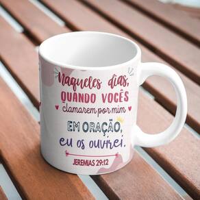 Caneca Personalizada Jeremias 29:12 - Porcelana 325 ml Naqueles dias Quando vocês clamarem por mim em oração eu os ouvirei jeremias 29:12 Uma lembrança diária da força da oração. Esta caneca foi criada para inspirar momentos de conversa com Deus e fortalecer sua fé a cada gole. Ideal para começar o dia em paz, renovar a esperança ou presentear alguém especial com uma mensagem poderosa da Palavra. Feita em porcelana branca de alta qualidade, sua estampa é aplicada por sublimação direta - com cores vivas, durabilidade e acabamento impecável sem adesivo . Destaques: Estampa dos dois lados com o versículo Jeremias 29:12 Pode ir ao micro-ondas e lava-louças Ideal para bebidas quentes ou frias Qualidade premium AAA+ Especificações: Altura: 9,5 cm Diâmetro: 8 cm Capacidade: 325 ml Material: Porcelana branca Transforme sua rotina com uma caneca que carrega mais do que café: carrega fé, oração e a certeza de que Deus ouve. Marca: Não Informado Ean: 7894917101041
