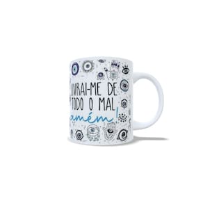 Caneca livrai me de todo mal amém personalizada de porcelana Atenção esse anúncio é referente a apenas uma caneca, as imagens são de vários ângulos.