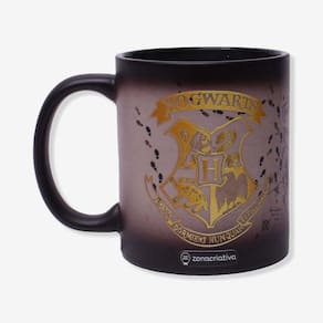 A caneca mágica do Harry Potter muda de imagem aparecendo o mapa do maroto quando colocado bebida quente.