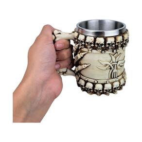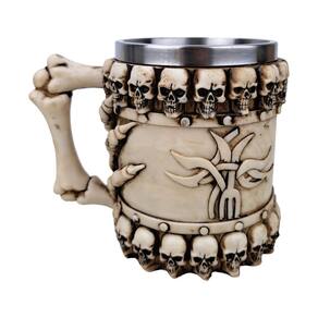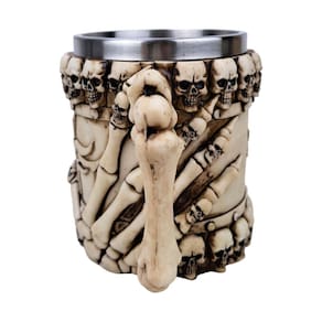 Caneca Medieval Crânios Mão Uma caneca medieval com um toque arrepiante Feita de resina resistente, esta caneca 3D apresenta um design de caveira que certamente chamará a atenção. Com alça para facilitar o manuseio, é perfeita para todos os fãs do estilo medieval e do macabro. Não é adequada para microondas ou lava-louças, mas garantirá que você tome suas bebidas com muito estilo. Uma adição única à sua coleção de canecas