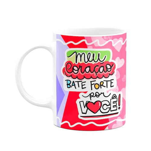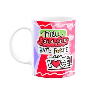 Caneca Namorados - Meu coração bate forte por você - Bg-pink