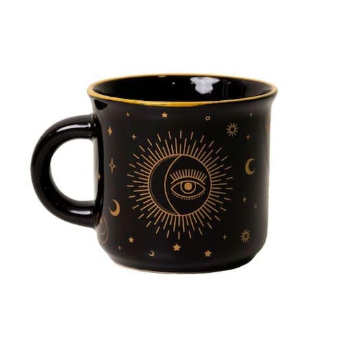 Caneca Nas Estrelas Dourado Trazendo a beleza do cosmos para as suas pausas para o café, nossa Caneca Nas Estrelas Dourado vai adicionar uma dose extra de charme e encanto ao seu dia a dia! Toda em cerâmica e contando com capacidade para 300 ml, essa lindeza conta com uma delicada estampa (com ícones de sol, lua etc.) para deixar a sua rotina ainda mais alto astral.