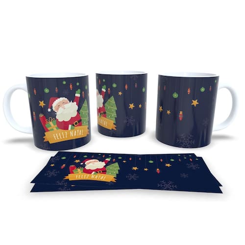 Caneca Natalina de Porcelana Branca Personalizada Natal Papai Noel