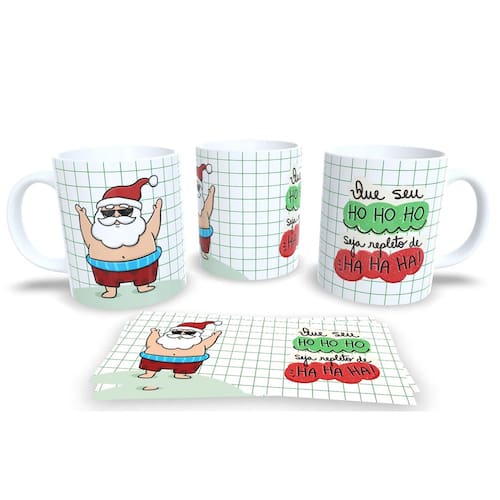 Caneca Natalina de Porcelana Branca Personalizada Natal Papai Noel