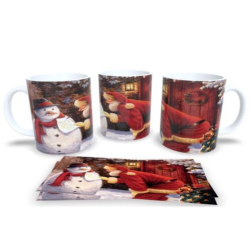 Caneca personalizada de porcelana de alto brilho, com alça e interior branca Coleção Natal Papai Noel.