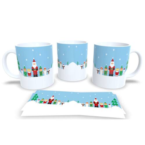 Caneca personalizada de porcelana de alto brilho, com alça e interior branca Coleção Natal Papai Noel.