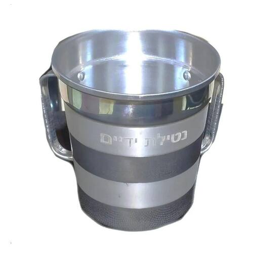 Caneca para a purificação das mãos, ablução, netilat yadayim, com listas foscas e brilhantes.