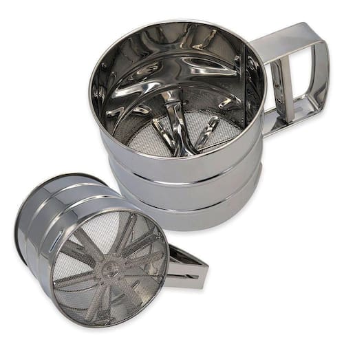 Caneca Peneira Polvilhadora em Aço Inox Com seu design em formato de caneca, é perfeita para pegar ingredientes na medida certa. Indicado para peneirar açúcar, polvilho, farinha, canela, chocolate e outros alimentos em pó.Conta com uma tela em inox e um mexedor para facilitar o trabalho, bastando apenas apertar o gatilho e irá movimentar e peneirar o ingrediente.Feita de material de qualidade, garante uma boa durabilidade e resistência. ESPECIFICAÇÕES:Material: InoxDimensões: Diâmetro 16cm x Altura: 10cmPeso: Aprox. 130gCapacidade: 250g CONTÉM:01 CANECA PENEIRA POLVILHADORA EM AÇO INOX