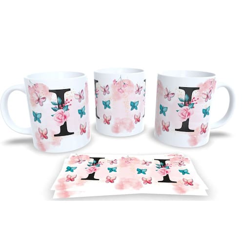 Caneca de porcelana de alto brilho, com alça e interior branca Coleção Alfabeto Iniciais Nomes.